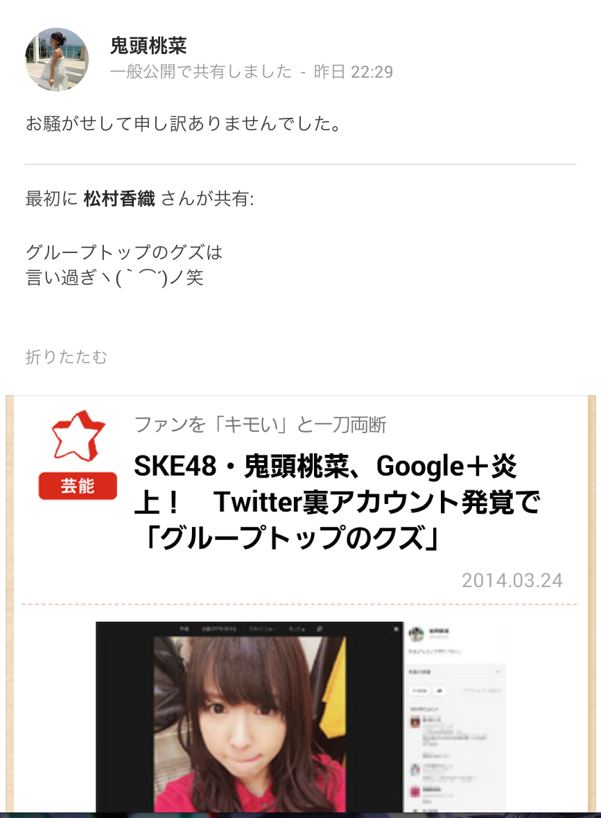 Ske48鬼頭桃菜 裏垢twitterの件を謝罪 ガールズちゃんねる Girls Channel
